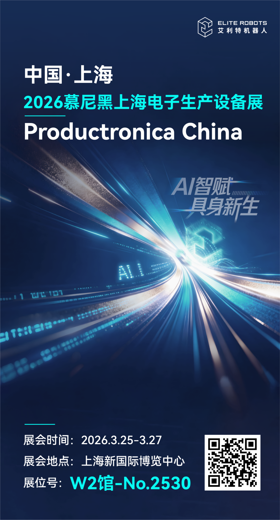 距離2026年慕尼黑上海電子生產(chǎn)設(shè)備展(productronica China)開幕僅剩一周,3月25日-27日,艾利特機(jī)器人將攜全新主題 “AI智賦,具身新生 —— 定義電子智造新未來” 重磅亮相。把“機(jī)器人同事”請(qǐng)到現(xiàn)場(chǎng),邀您見證電子智造的無限可能。
