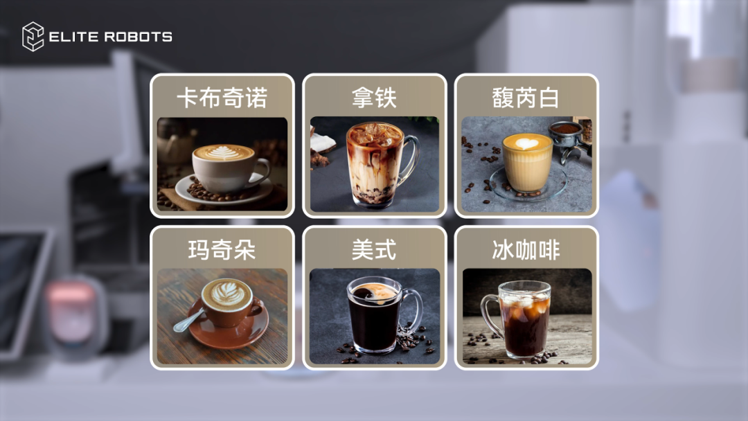 機器人咖啡一體機還添加了多個自動化模塊,搭載“自助點單、自動取杯、自動取冰、自動打奶泡、自動清洗奶缸”等程序,可全自動制作一杯拉花精致、口味甘醇的高品質現磨咖啡,質量標準,口味穩定、出品一致,每杯咖啡的口感和品質都能達到專業大師級制作水準。