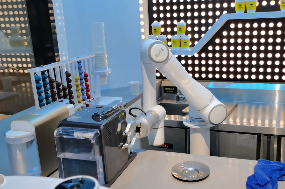 艾利特協作機器人安全可視化、智能自動化、簡單易操作、高效省人工、出品標準化等多項優點,讓它不僅可以制作咖啡,還可以做的更多,機器人咖啡一體機只是艾利特在新零售場景應用的冰山一角。