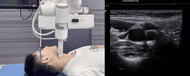 艾利特協作機器人與超聲深度打通,最大程度保留醫生左右手同時操作傳統超聲的習慣,并改善其舒適性,超聲檢查實際應用場景展示如下: