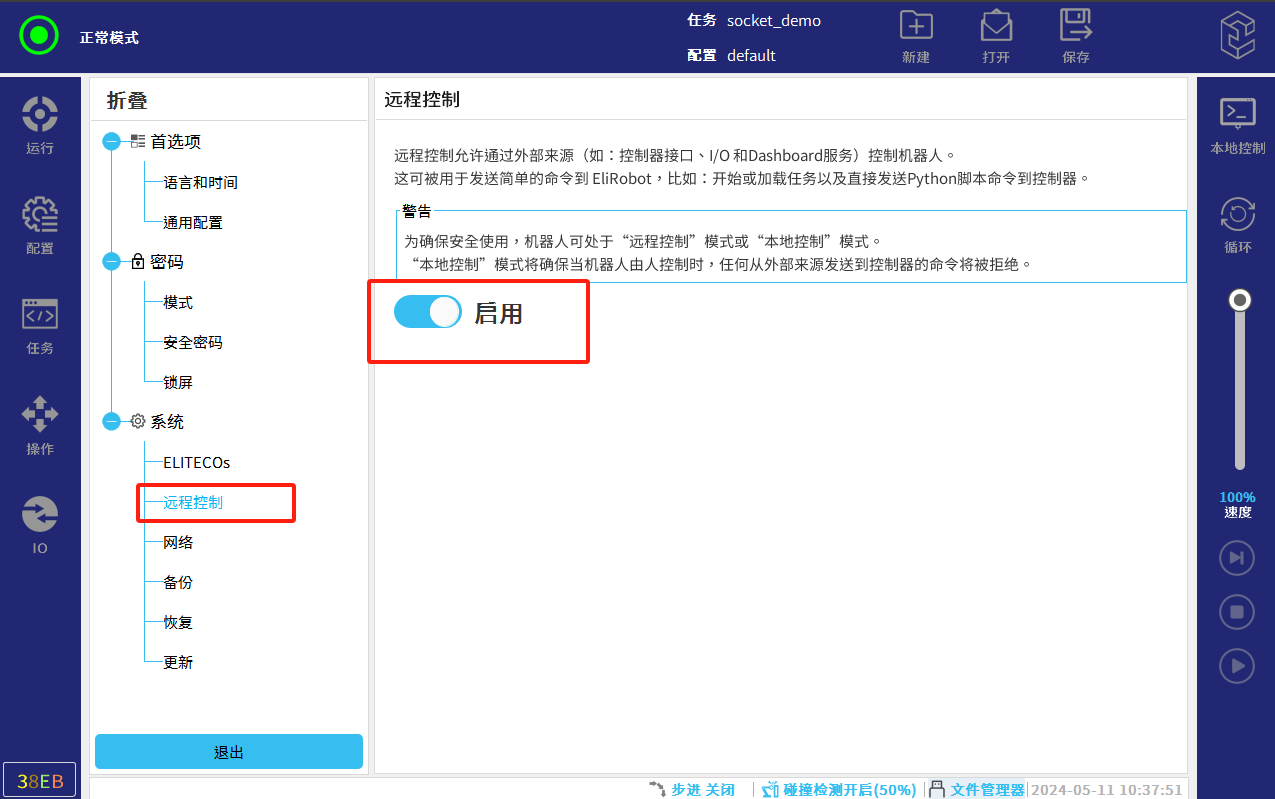 外部設備可以往30001直接發送機器人腳本,機器人處于遠程模式,機器人就會運動。