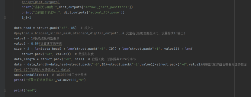 - 輸出:機器人輸出整型寄存器的值、末端負載等