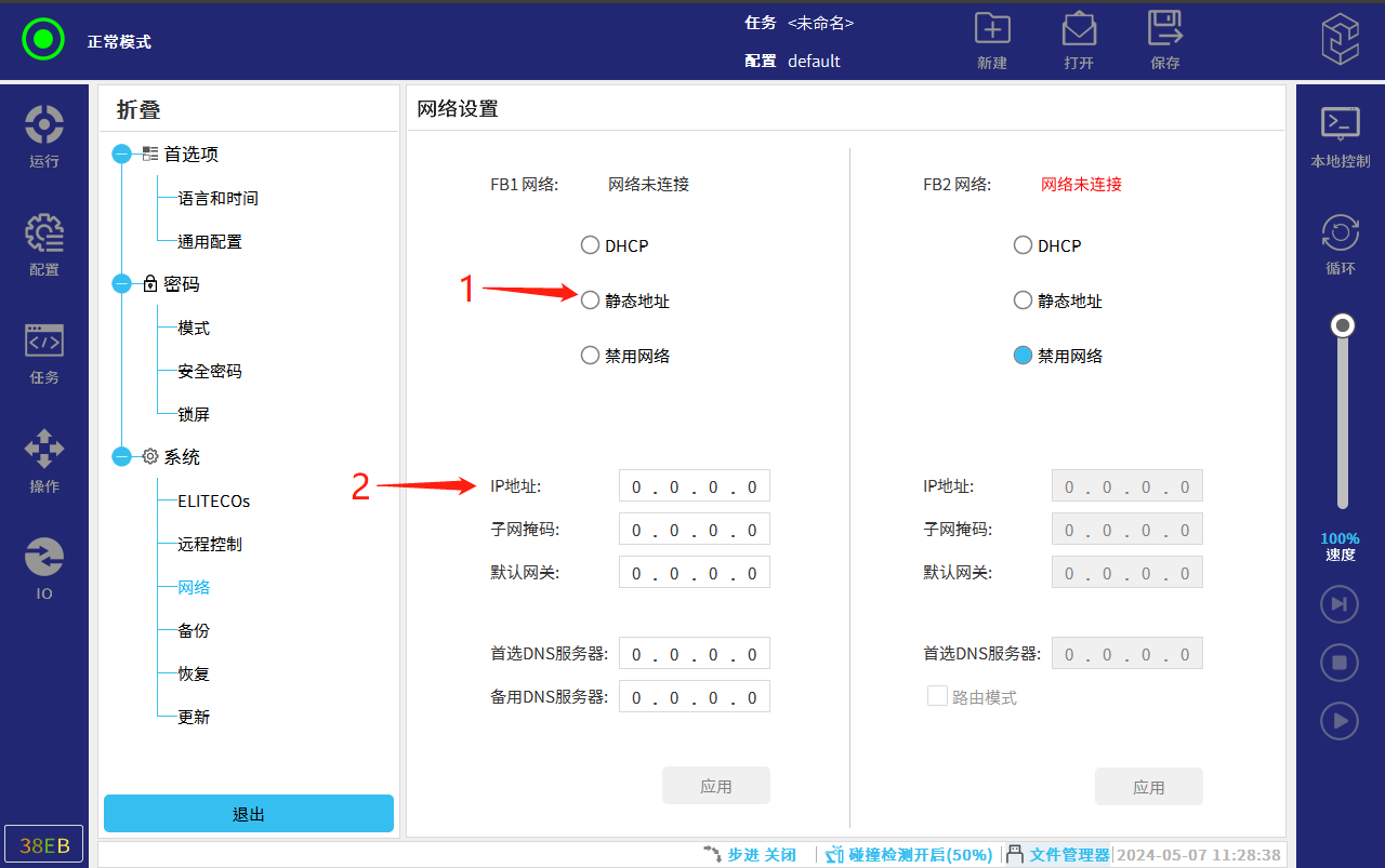 3. 選擇靜態地址,設置FB1網口的IP