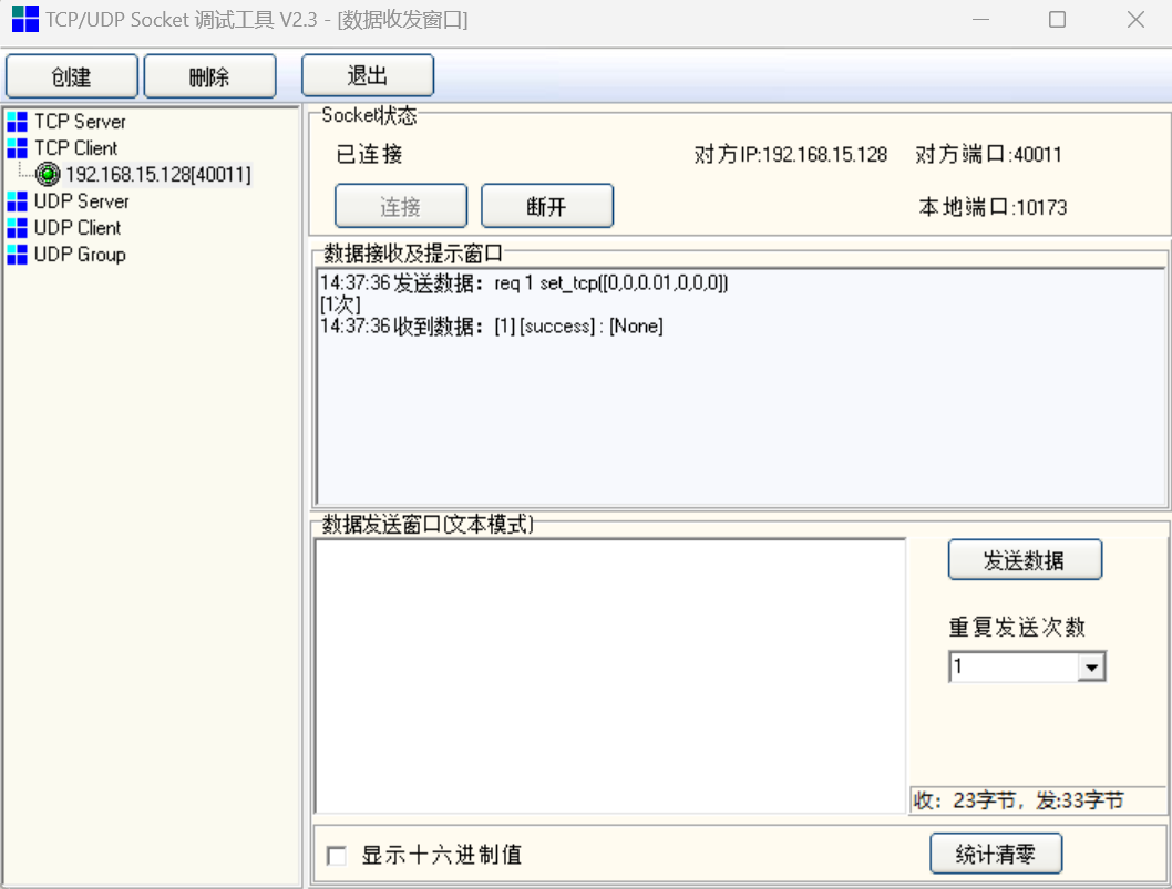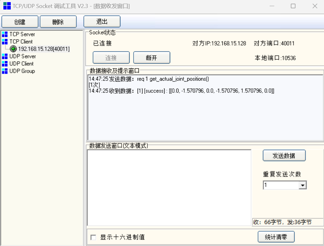 使用socket tool等工具,連接機器人40011端口,進行測試。