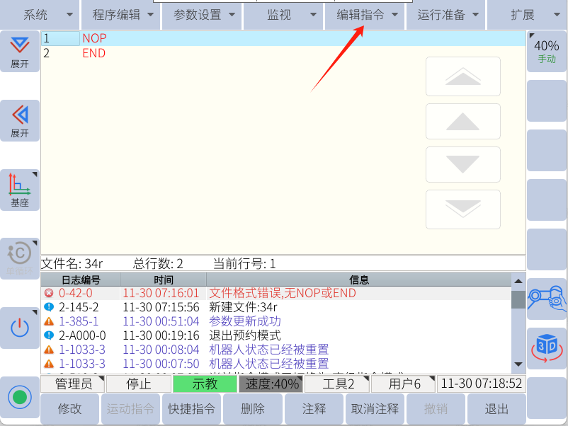 1. 推薦使用Web示教器進行LUA編程,詳細使用Web示教器可以咨詢官方技術文檔。