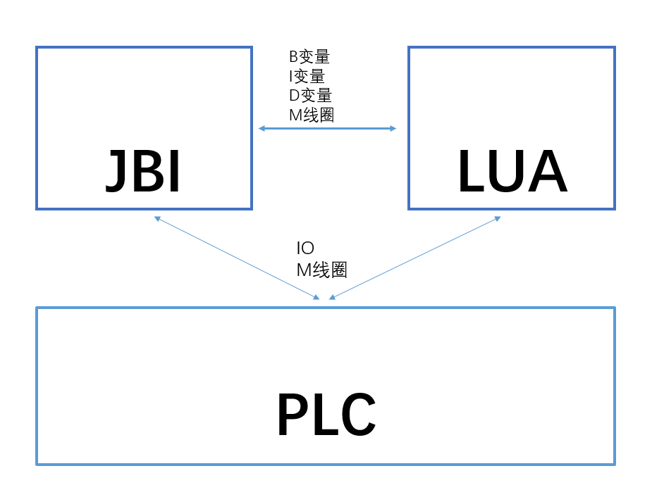 JBI通過機器人的全局變量與LUA交互,例如:B/I/D變量和M線圈,以讓外部設置的通訊