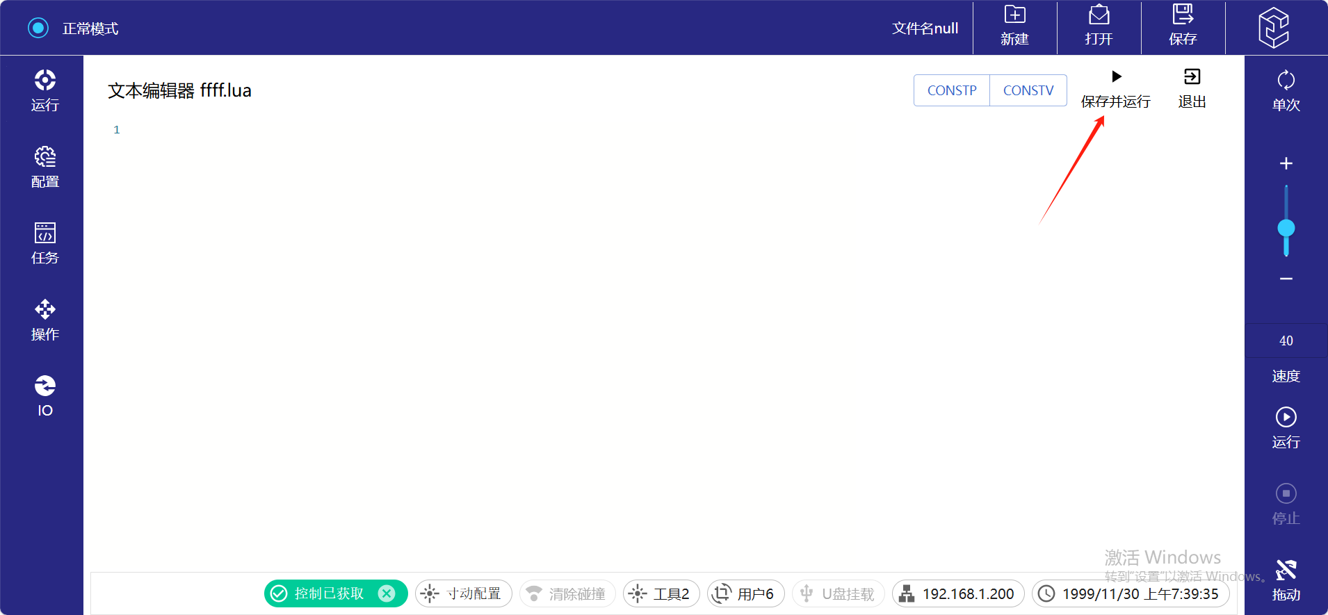 3. 程序編輯好后可以點擊保存并運行進行測試。
