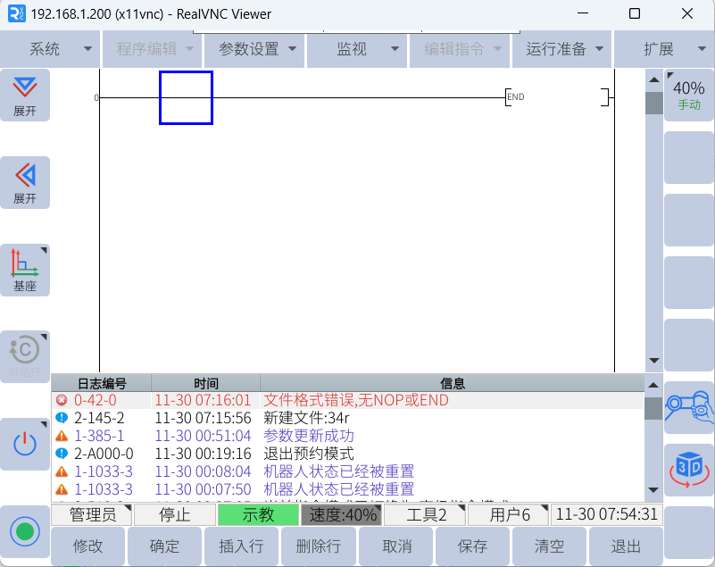 用戶plc一般只用作簡單的機器人功能配置,不能當做邏輯控制器使用,編寫復雜程序會導致無法保存。
