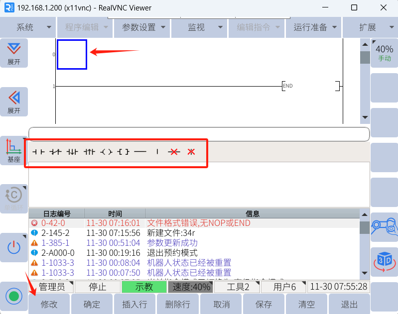 3.在空白區域點擊修改即可出現PLC指令進行編寫