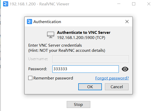 4. 在VncViewer的界面IP輸入欄中輸入對應(yīng)機器人的IP地址,回車鏈接,密碼為333333,即可