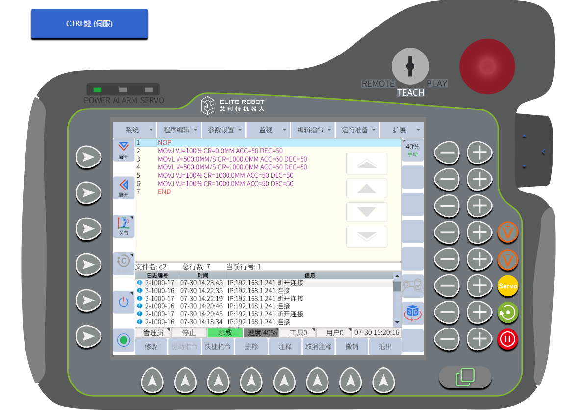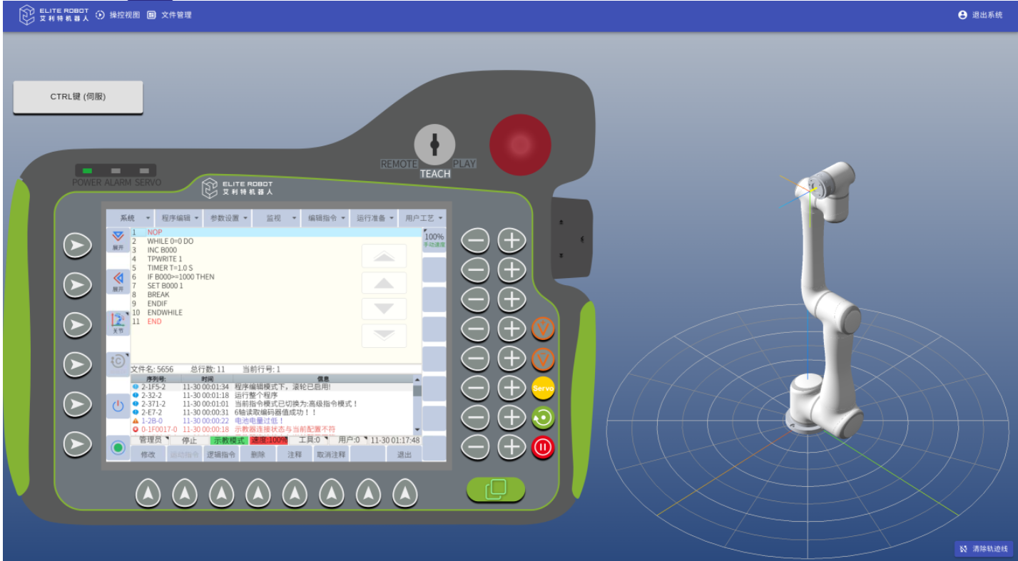 注:3.12以下3.0.1以上的版本機器人版本支持網(wǎng)頁示教器,支持示教器的界面顯示和控制,以及機器人模型的實時顯示和對應(yīng)軌跡線的顯示,同時還支持編寫機器人的jbi運行程序和lua腳本程序。