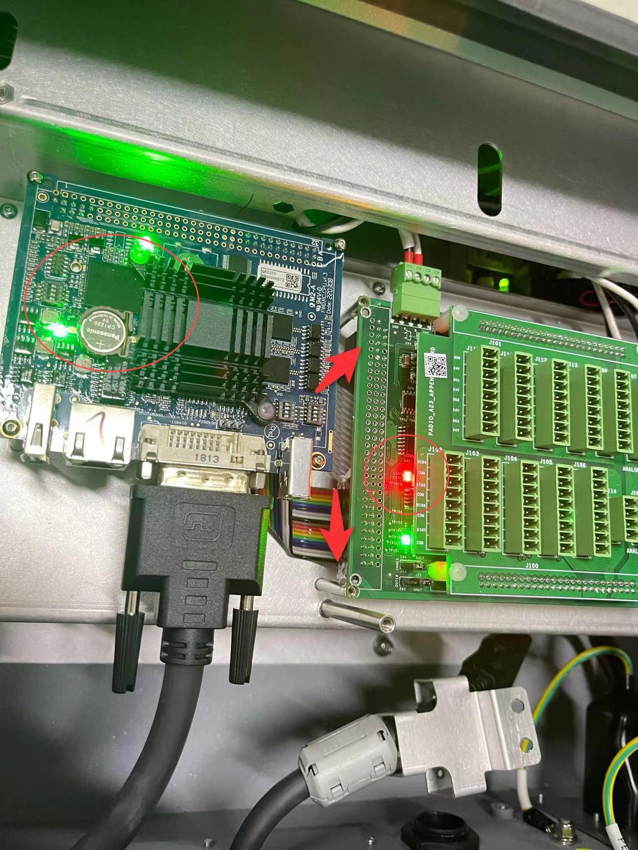 當核心板、IO板異常或者核心板與IO板連接處虛接時,也會造成機器人頻繁重啟,當電源模塊都是正常情況下,可以通過排查核心板和IO板來解決,一般IO板會亮紅燈或者核心板指示燈閃爍,可以通過重新插拔連接處或者更換新的核心板或者IO板來解決