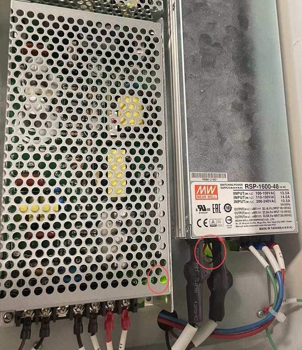 在外部無短路情況下,可查看48v電源和24v電源,觀察電源是否會出現供電異常,若出現電源通斷情況(可觀察電源指示燈跳變情況),可將對應電源輸出端負載拆除掉,單獨監測電源狀態,若還是出現電源通斷情況,可通過更換對應的電源模塊來解決