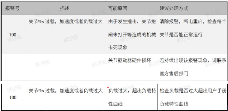 報警代碼:100關節%s 過載,加速度或者負載過大