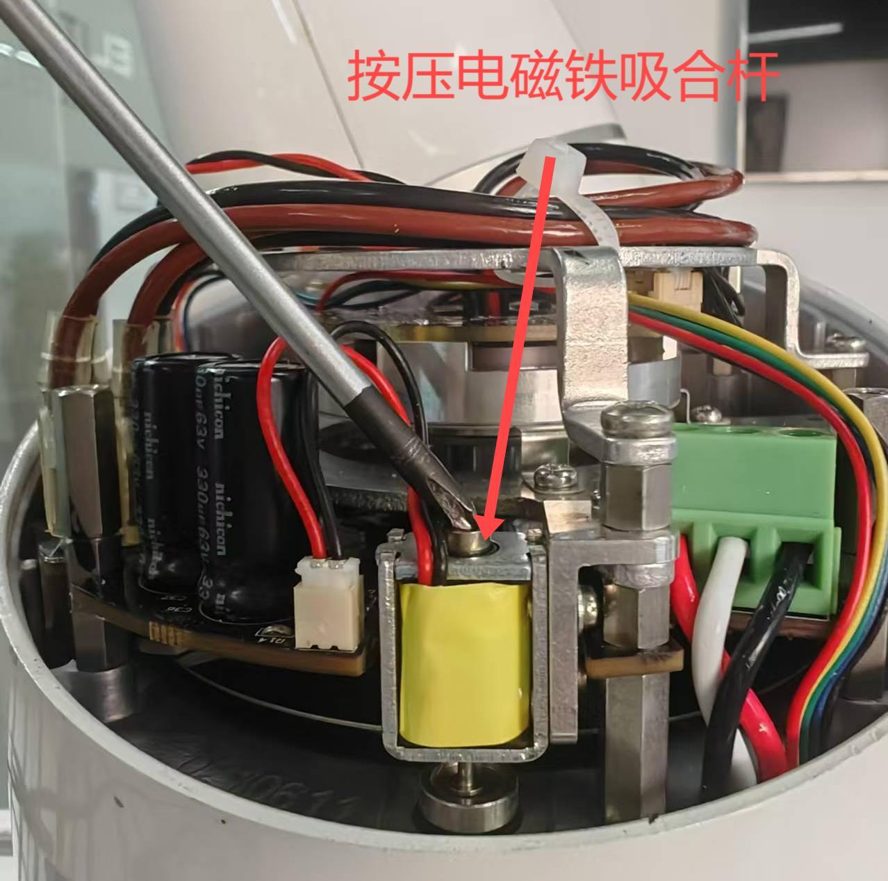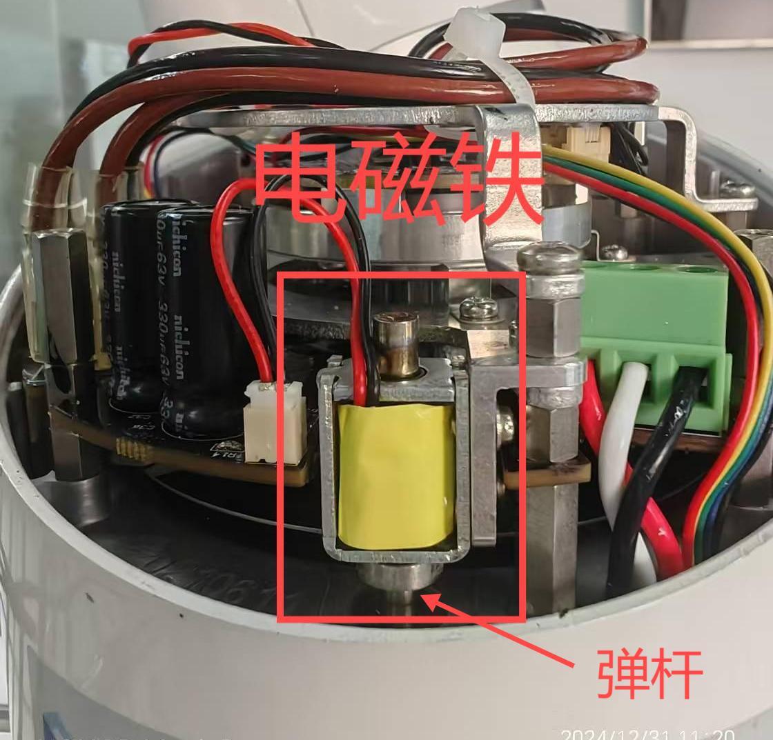 步驟三:檢查電磁鐵抱閘和減速機是否正常。1.關閉電源,將故障關節的端蓋打開,檢查電磁鐵的彈桿是否卡死或者彈桿掉落。