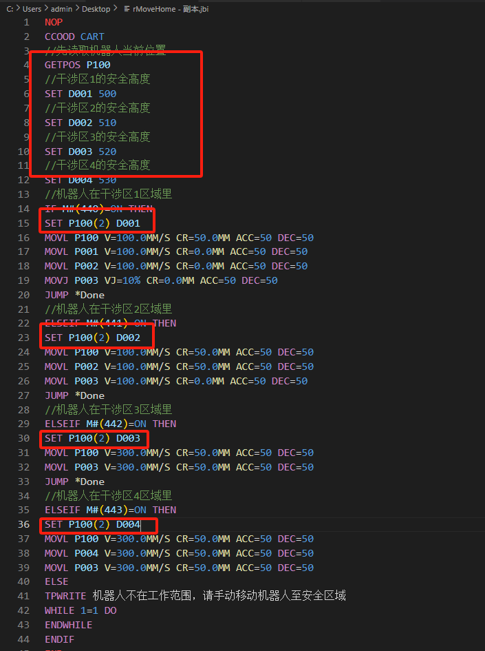 方式一:上升到各個區域上位安全位置高度,需要手動示教各個干涉區的上方安全位