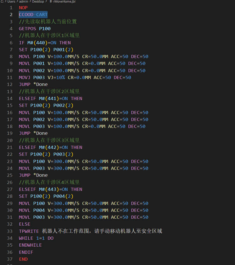 不在干涉區暫時無法規劃路徑,故不能依靠干涉區回原,若在運行過程中出現機器人停止在干涉區之外且在工作范圍之內,需要重新規劃相關干涉區