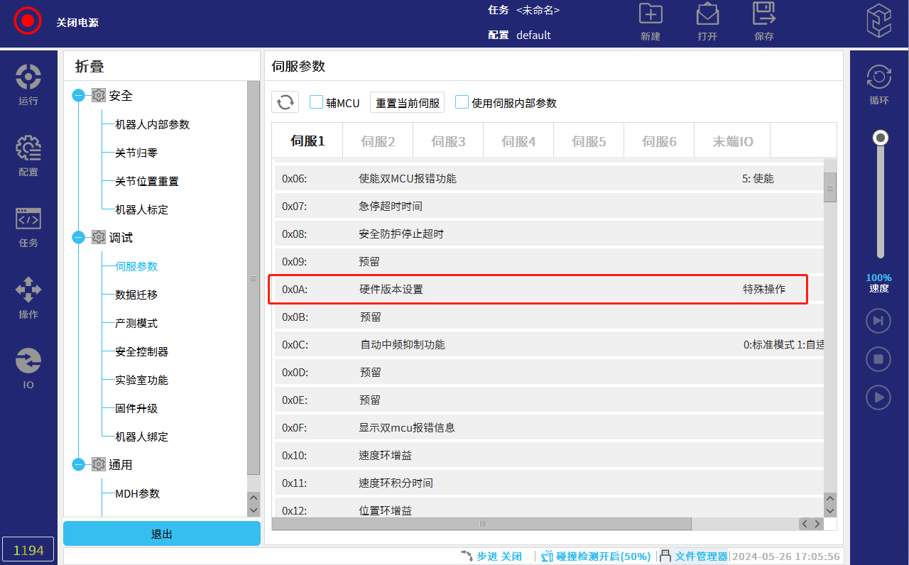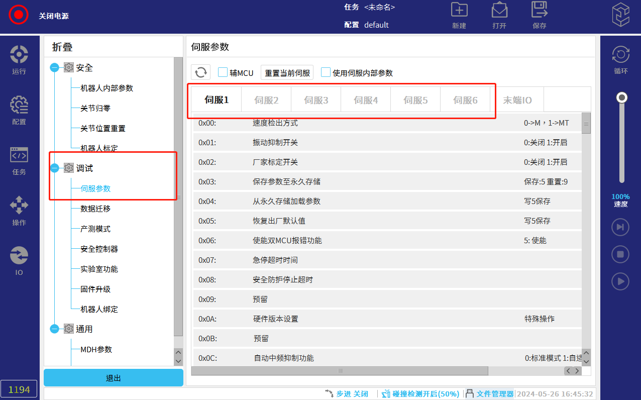 點擊伺服-伺服參數,選擇對應伺服,下拉查看0x74參數,