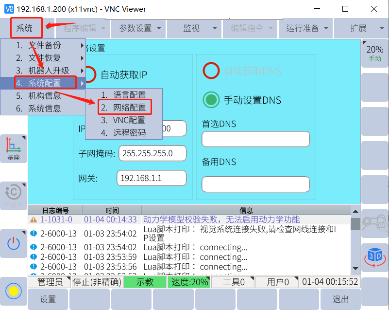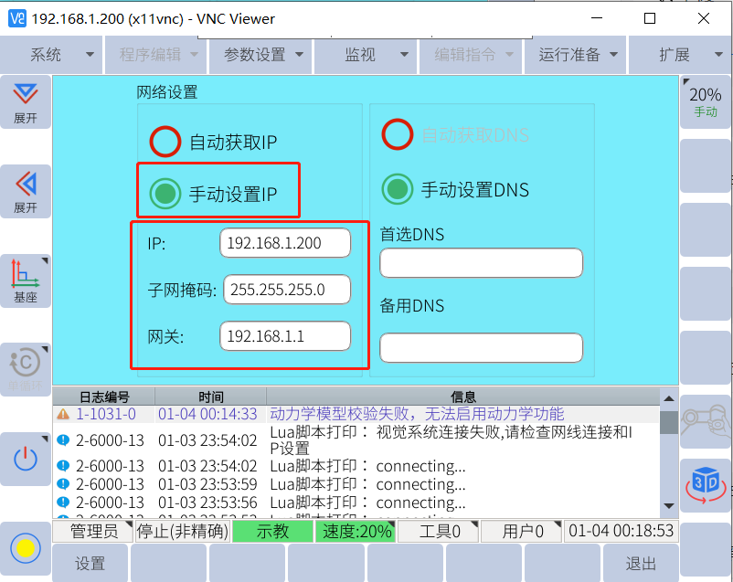 2、然后電腦與EC機器人通過網線相連接,設置為同一網段