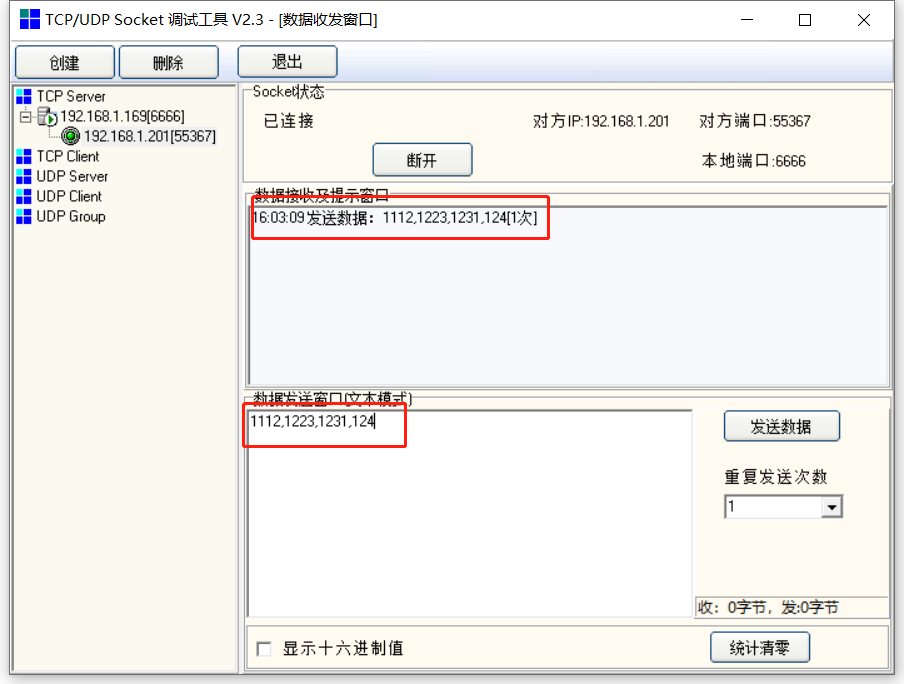 機器人觸發發送數據后,會給服務器發送設定的字符串,服務器會顯示接收到的數據
