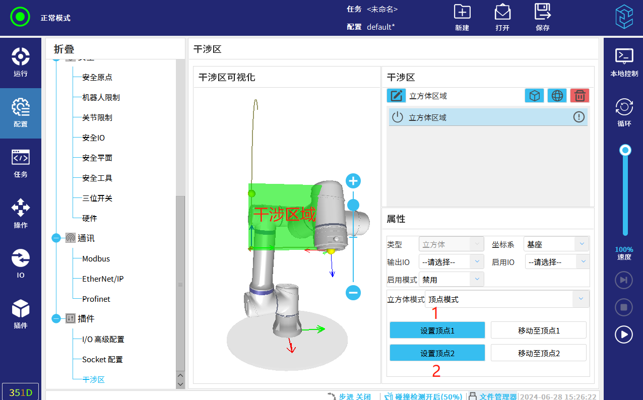 啟用IO:通過設置對應DI 進行開啟或關閉干涉區