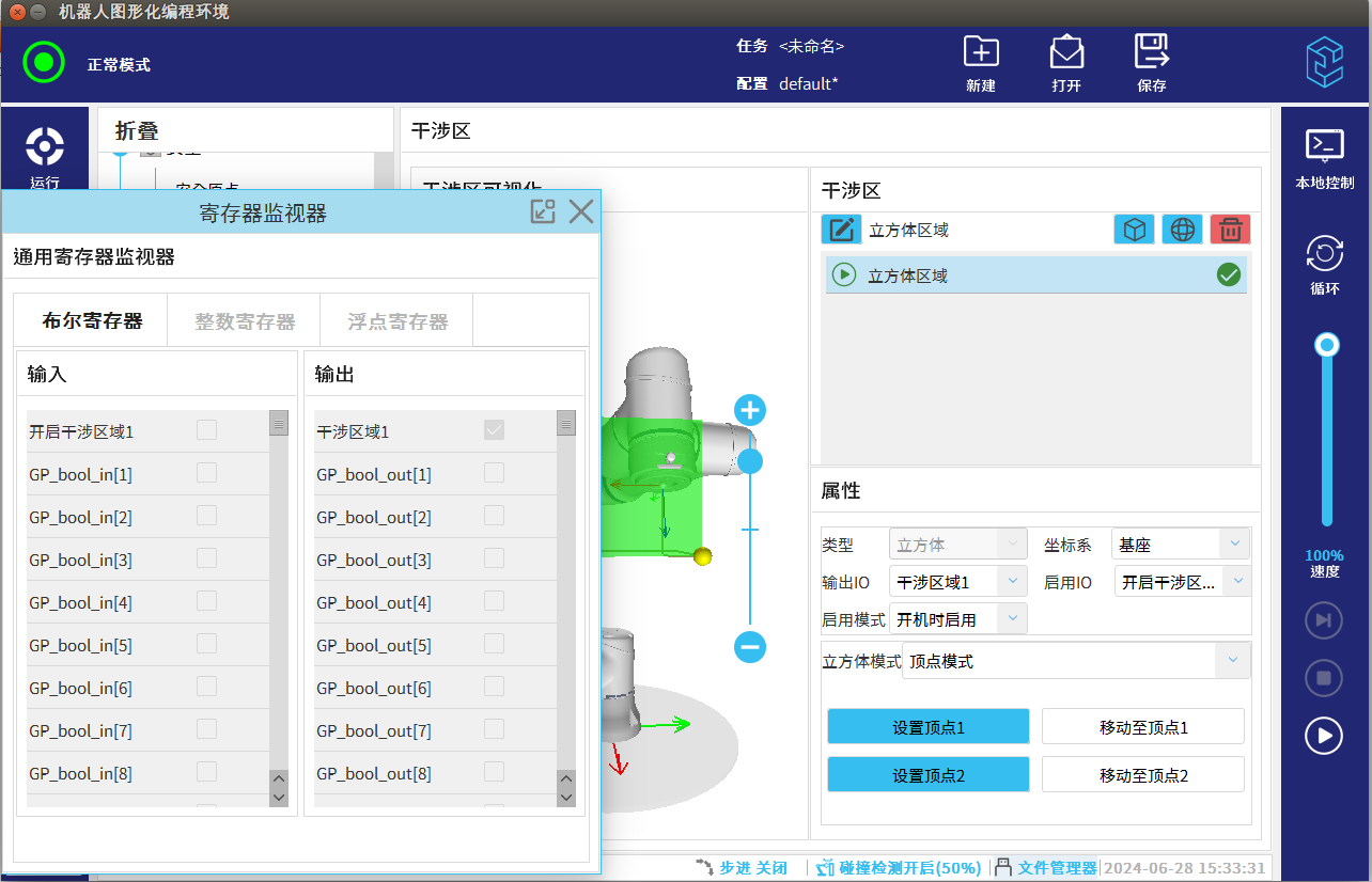 (2):開機時啟用:無論程序是否處于自動任務 只要進入到干涉區都會自動觸發綁定信號