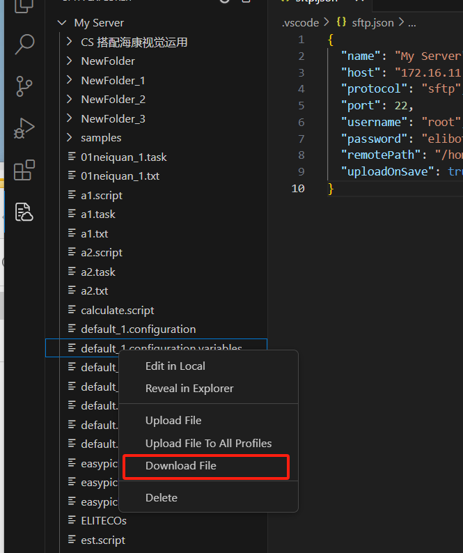 下載或者上傳文件需保證當(dāng)前文件夾下有創(chuàng)建的SFTP配置文件夾