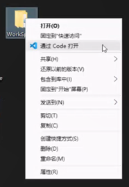 步驟:首先創(chuàng)建新文件夾命名WorkSpace – 右擊文件夾選擇通過code打開