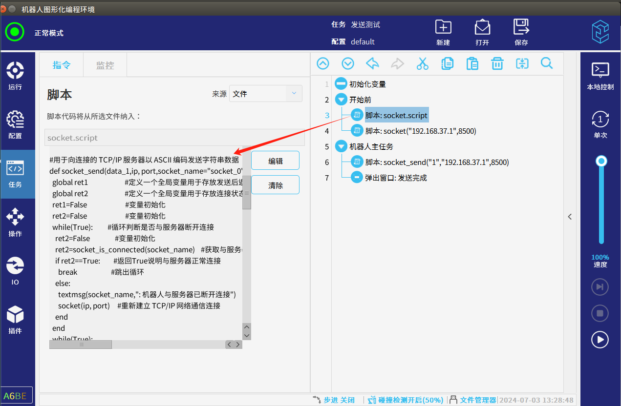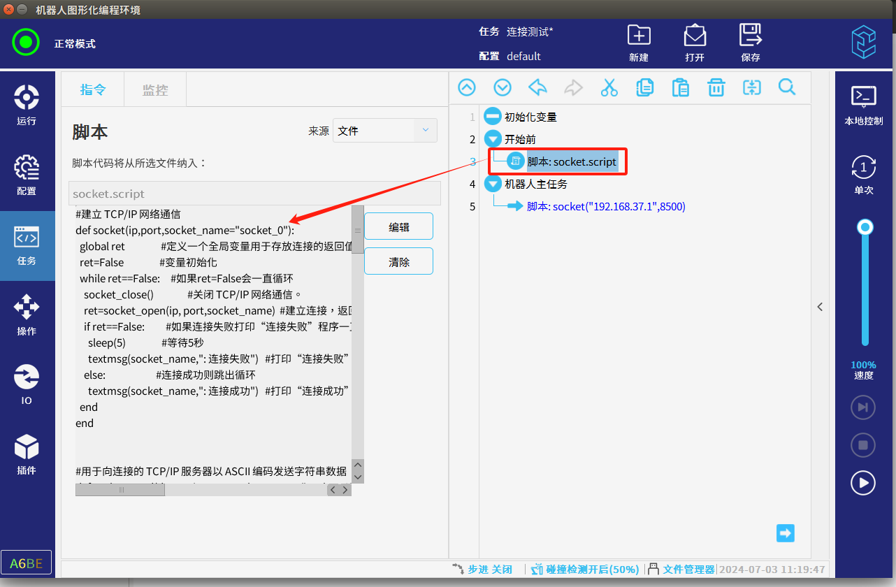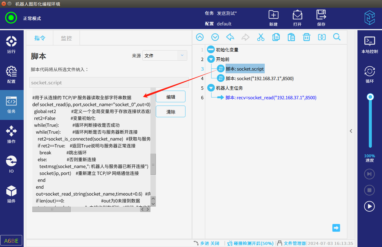 本篇文章介紹CS機器人作客戶端在使用腳本與服務器做socket通訊時怎么樣循環判斷連接,通訊斷開后怎么樣自動連接,以下內容要求機器人應用2.12及以上