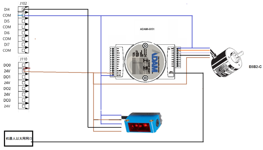 機器人與協(xié)議轉(zhuǎn)換模塊通過網(wǎng)線相連接