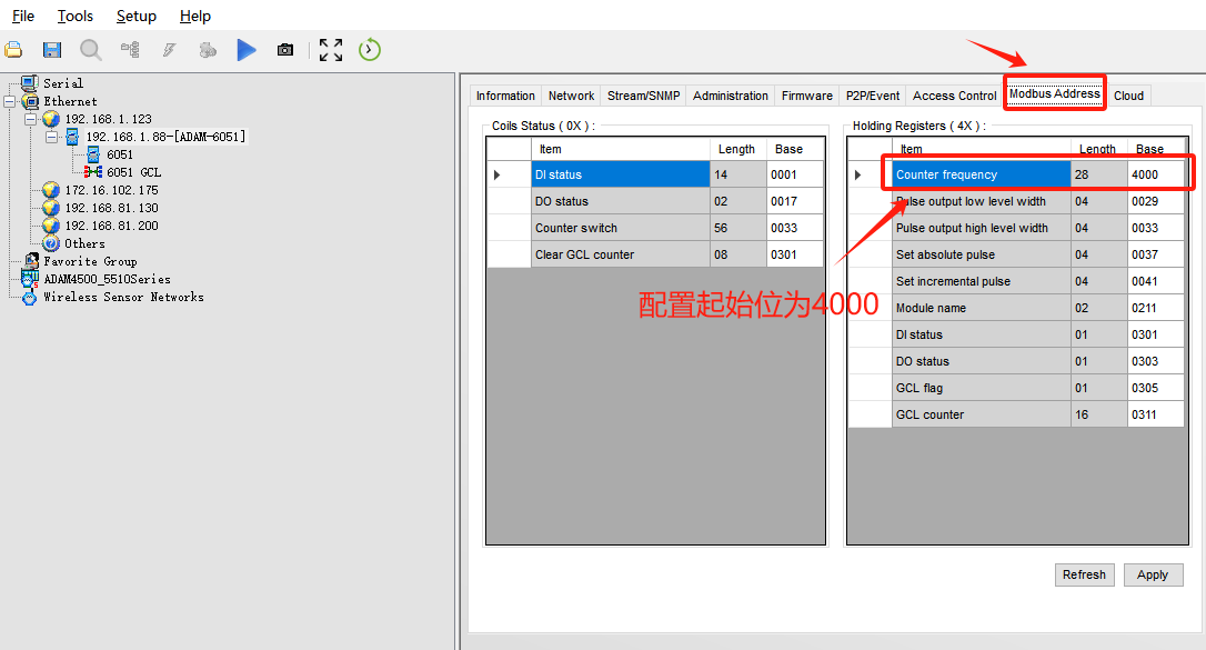 然后配置Modbus Address,把圖上的起始位配置成4000.