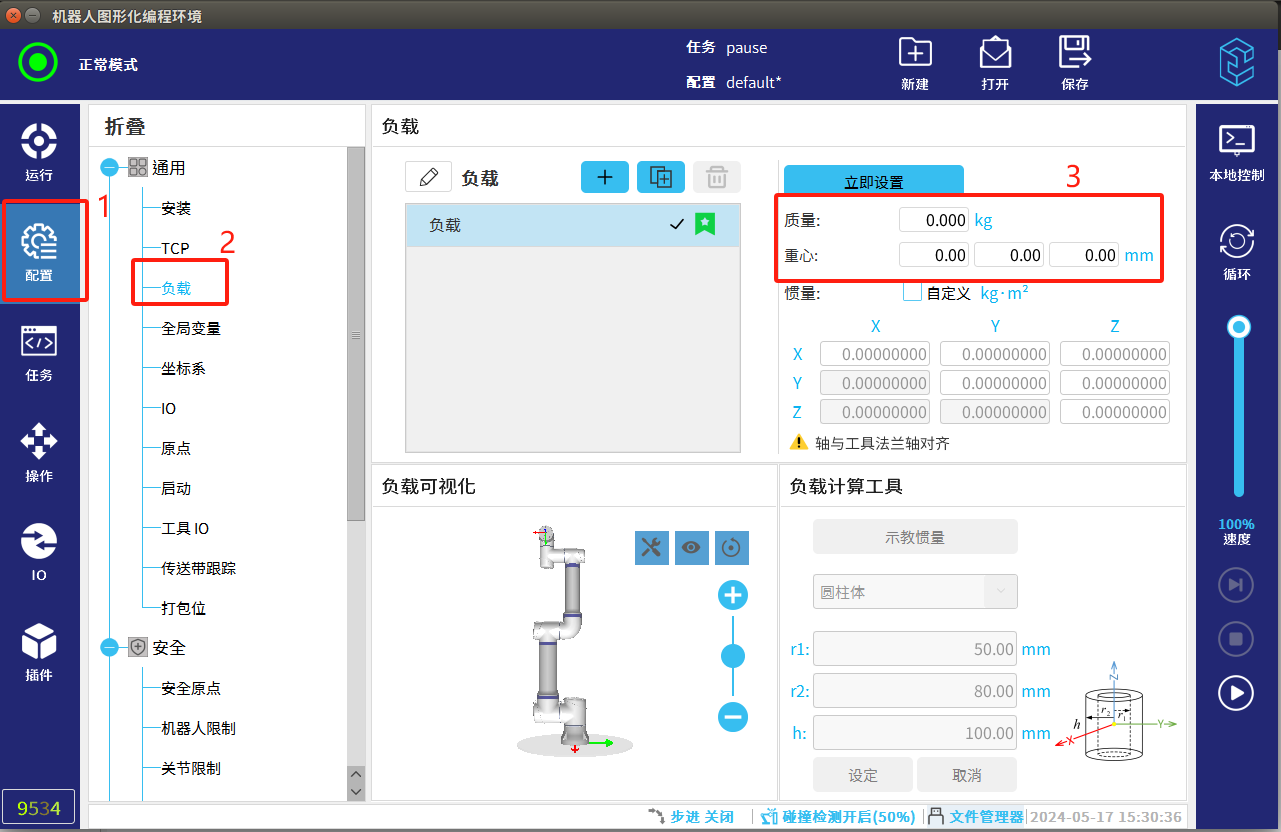 1.根據(jù)實(shí)際工具情況,合理設(shè)置機(jī)器人負(fù)載數(shù)據(jù)。