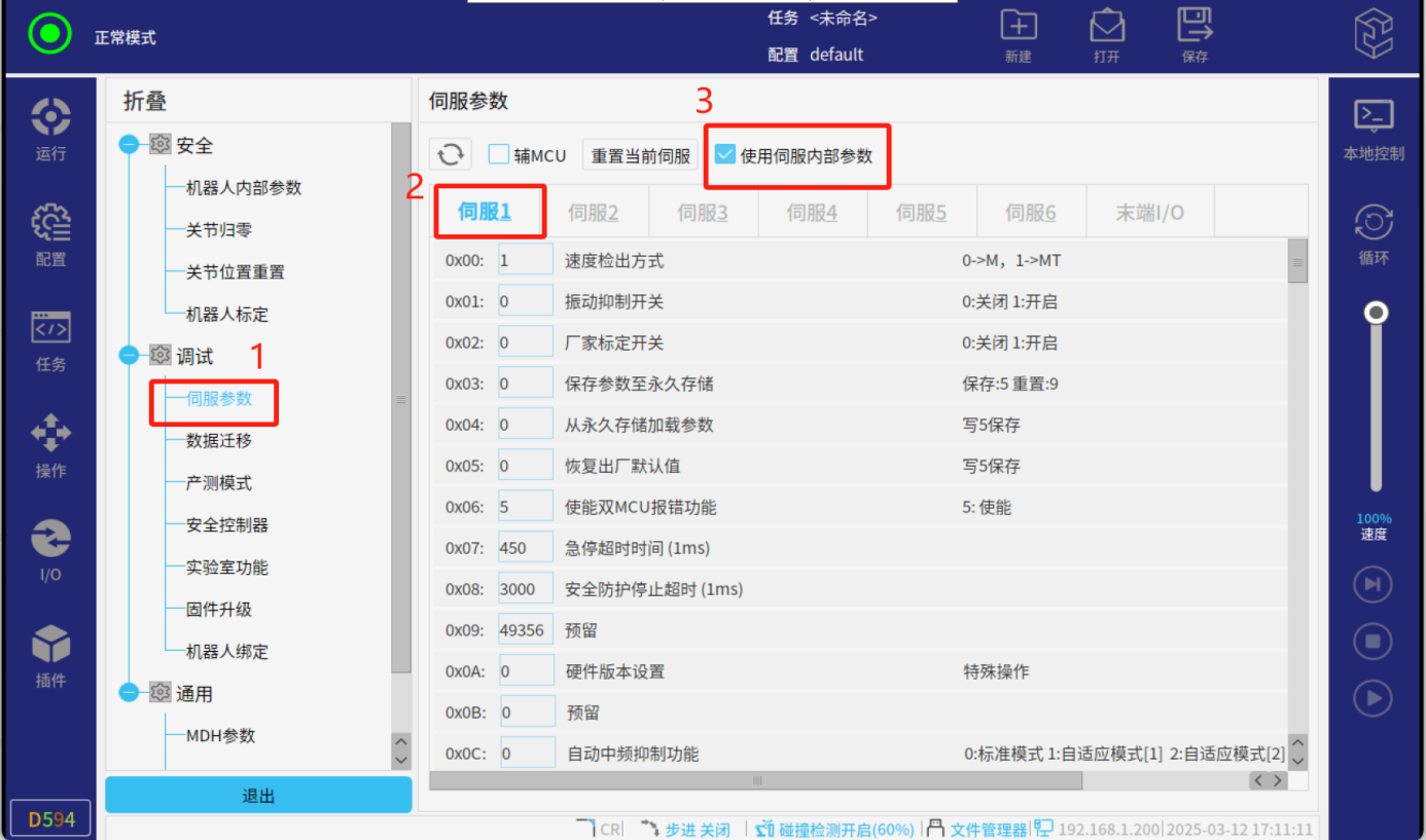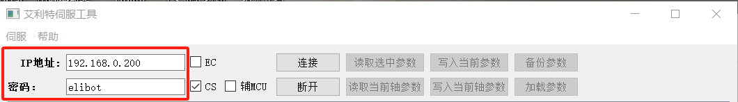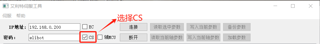 3、由于CS控制器上電后會(huì)自動(dòng)下發(fā)部分參數(shù),因此使用該固件時(shí),需要在伺服參數(shù)頁面將“使用內(nèi)部參數(shù)"勾選;,選擇需要抑制的伺服(比如一軸需要抑制就選伺服1);