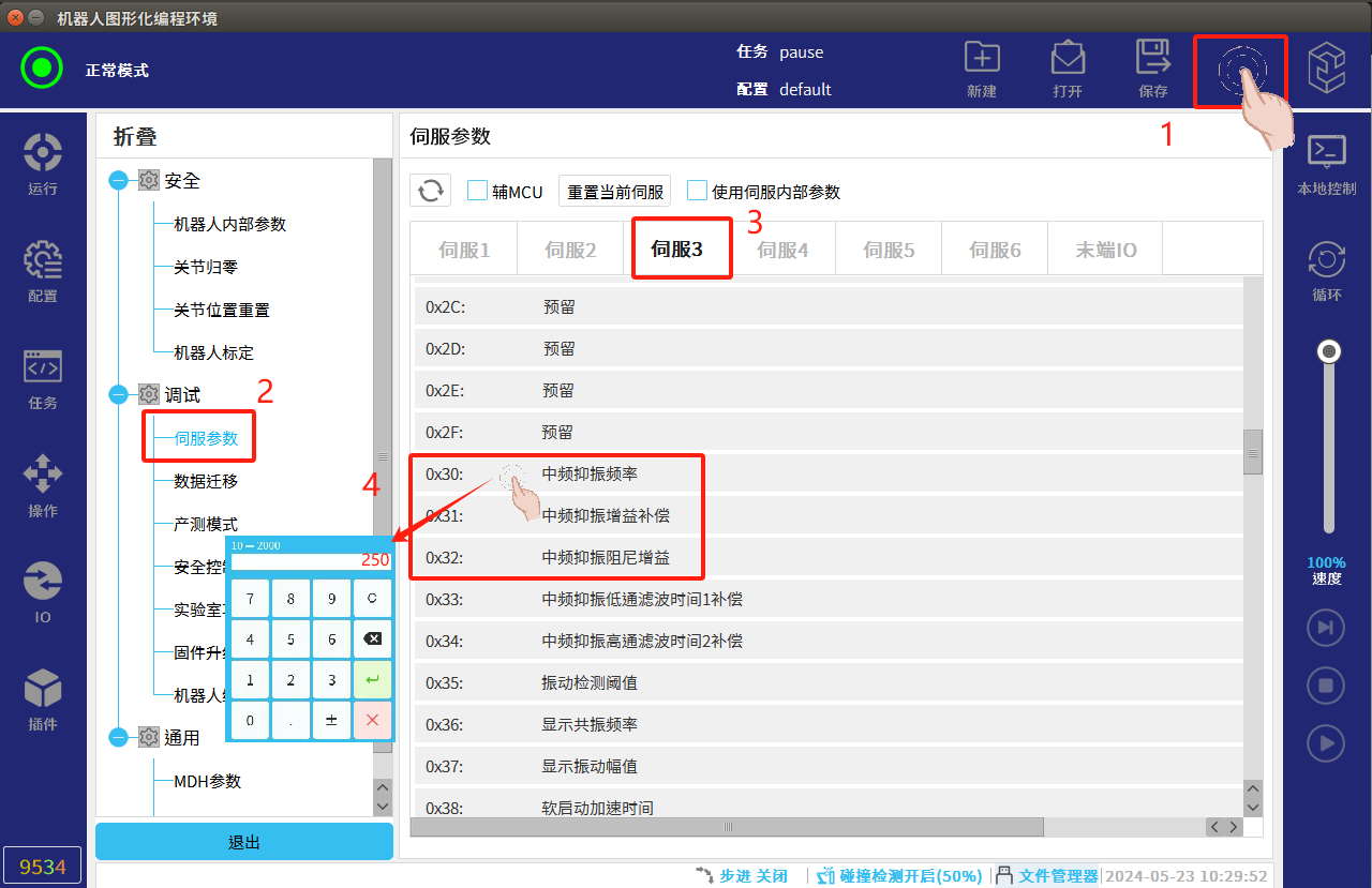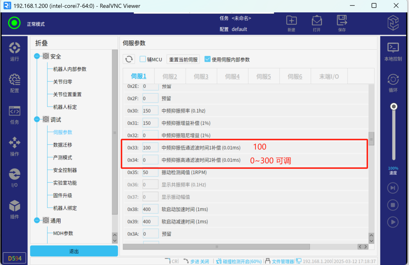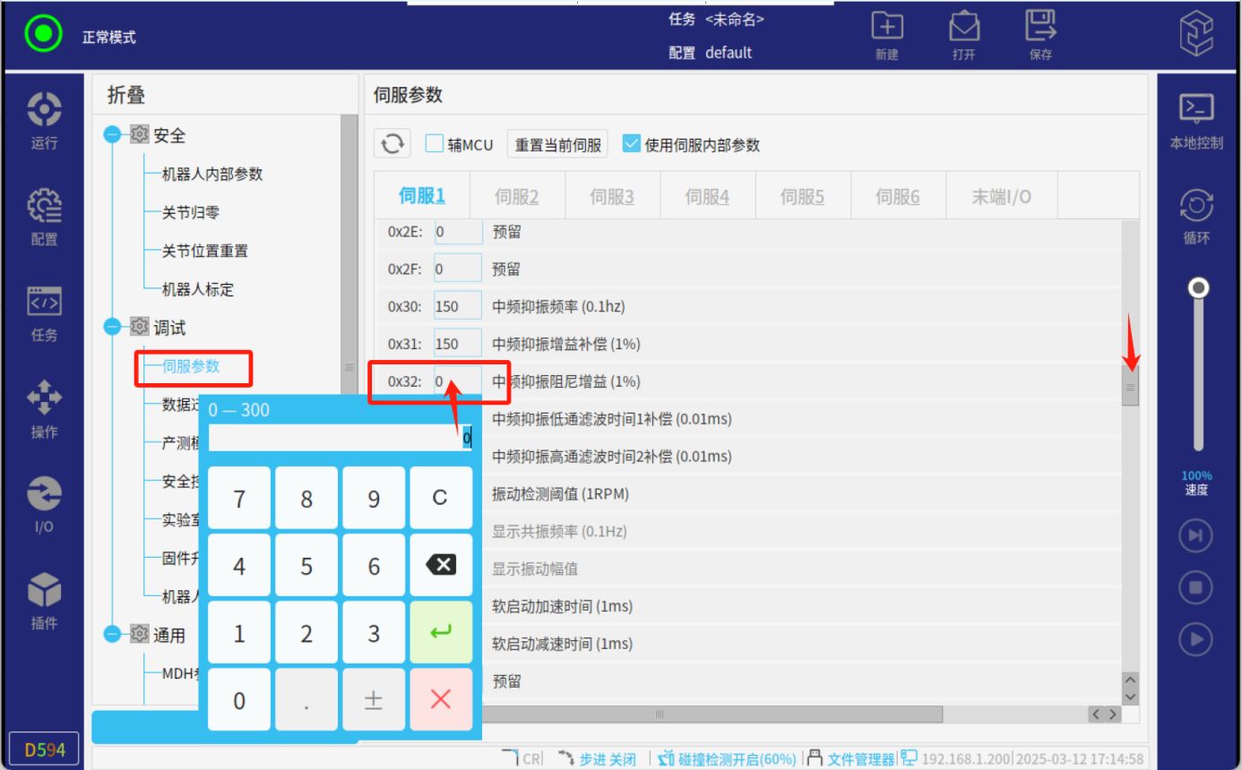 如果通過以上方法未排除出抖動(dòng)原因且手動(dòng)手動(dòng)拖動(dòng)無卡頓且機(jī)器人運(yùn)動(dòng)軌跡抖動(dòng),可以試試通過低頻抖動(dòng)抑制功能使機(jī)器人減少抖動(dòng)。