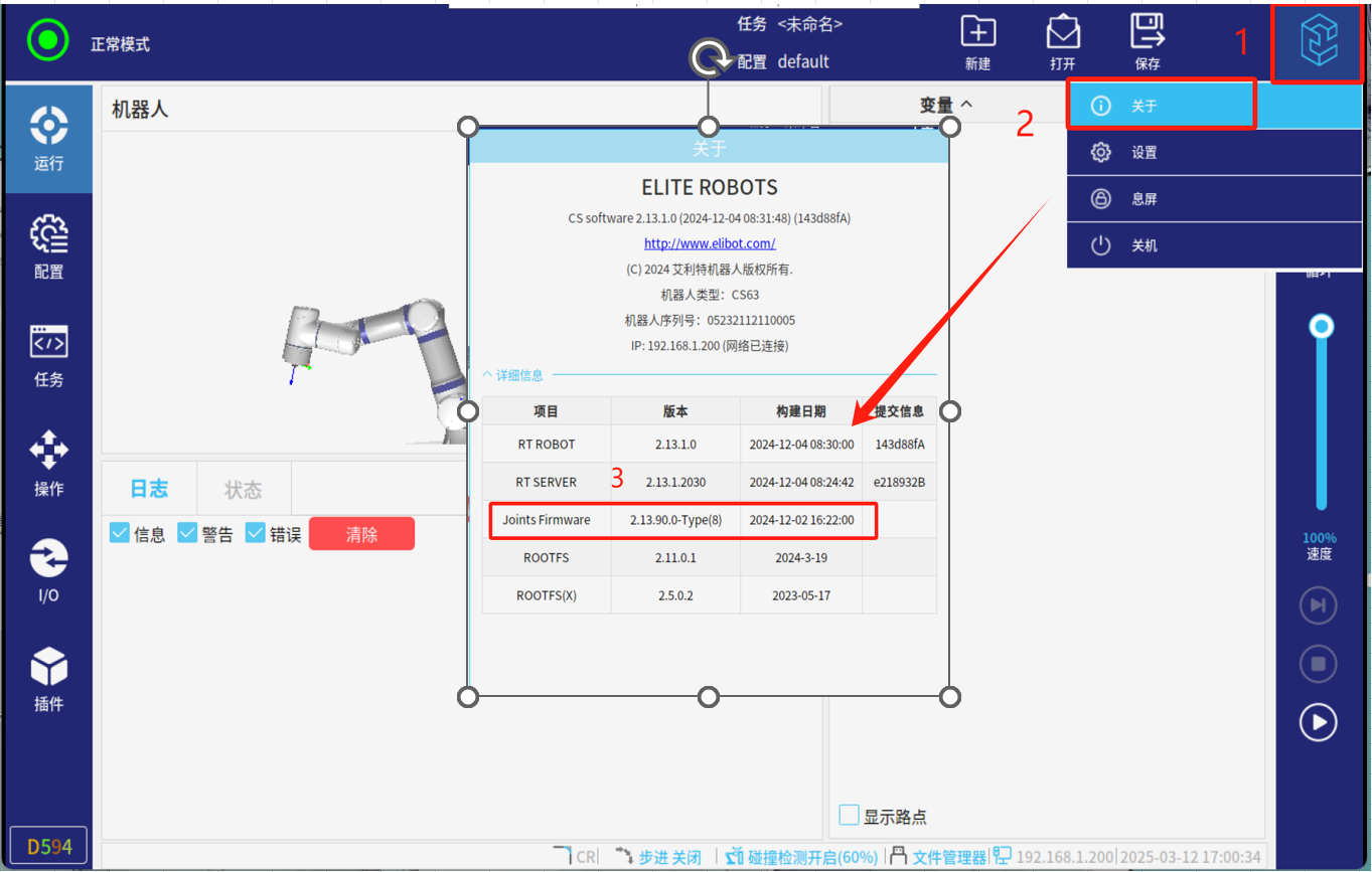 1.在正常模式下點(diǎn)擊如圖4-1所示右上角紅框標(biāo)注區(qū)域(連續(xù)快速點(diǎn)擊 5-8 次)就會(huì)出現(xiàn)輸入密碼頁面界,然后輸入密碼:elibot,進(jìn)入專家模式。