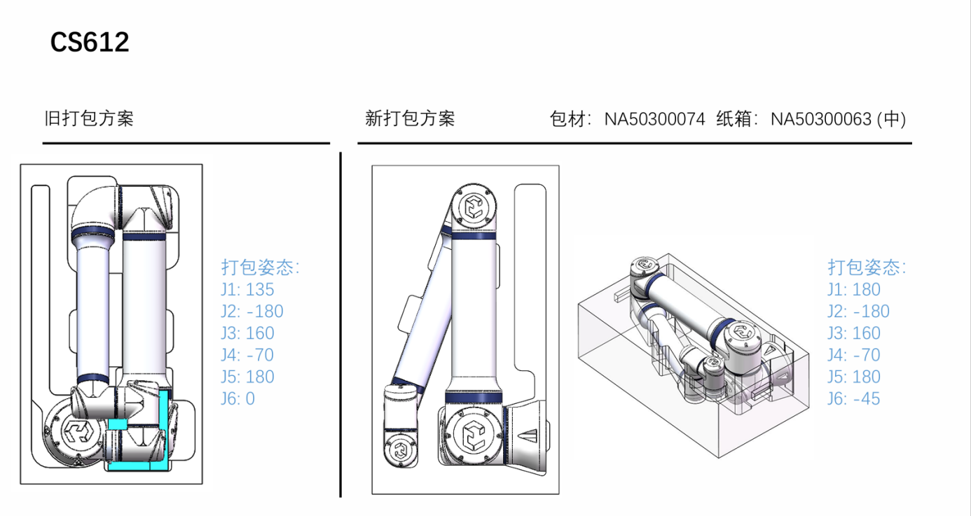 5.運(yùn)輸過程中需要機(jī)器人的2 3軸不要受力,有支撐,合理的打包姿態(tài)運(yùn)輸能能夠有效的避免機(jī)器人抖動(dòng)。打包姿態(tài)如圖3-1: