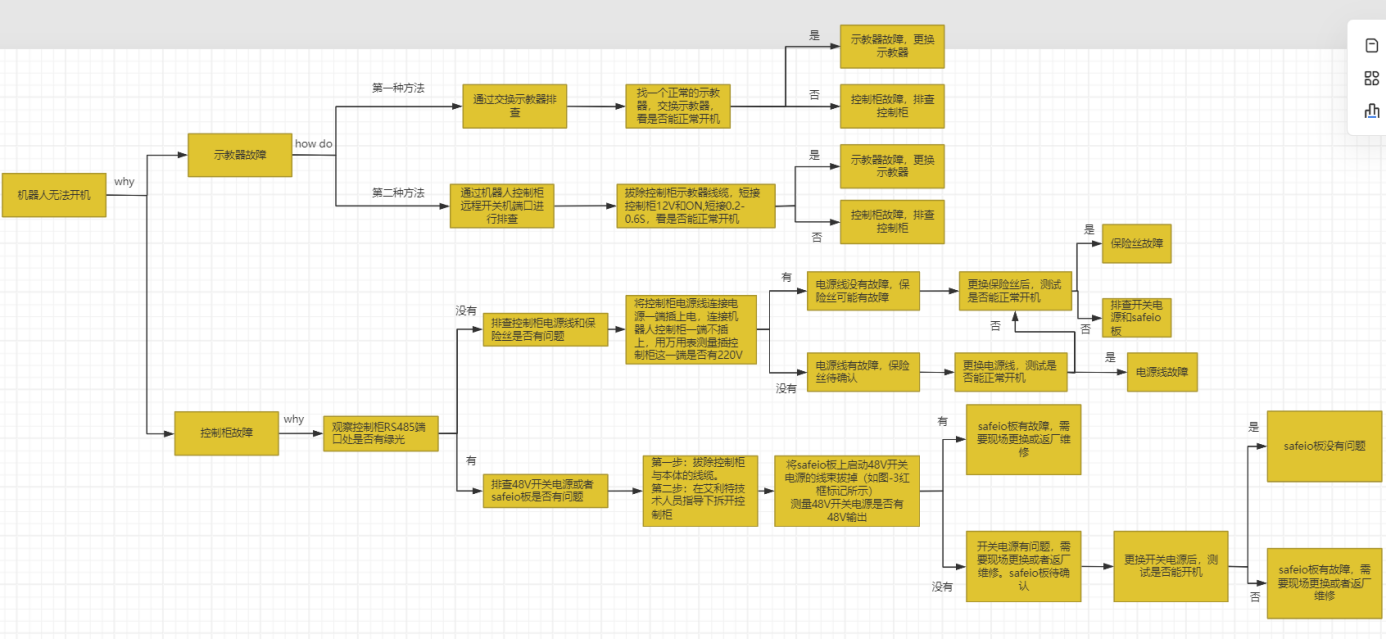在客戶現場很有可能會出現機器人無法開機的問題,出現這種問題的原因有可能是客戶人為導致的,也有可能是設備質量問題,所以我們要善于去排查是什么問題導致的機器人無法開機。