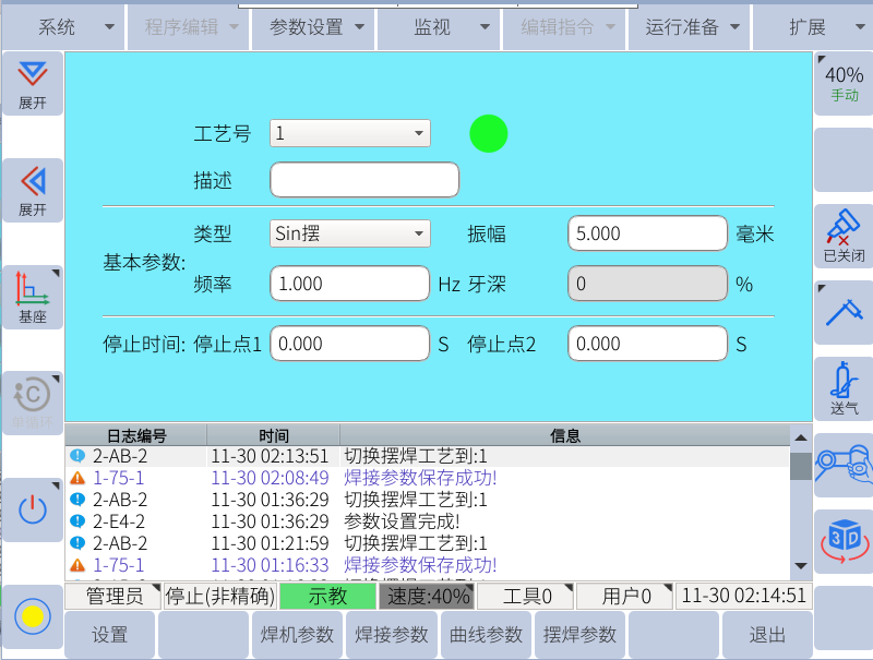 類型:目前擺焊的類型,支持Sin擺,三角擺,月牙擺,橢圓功能