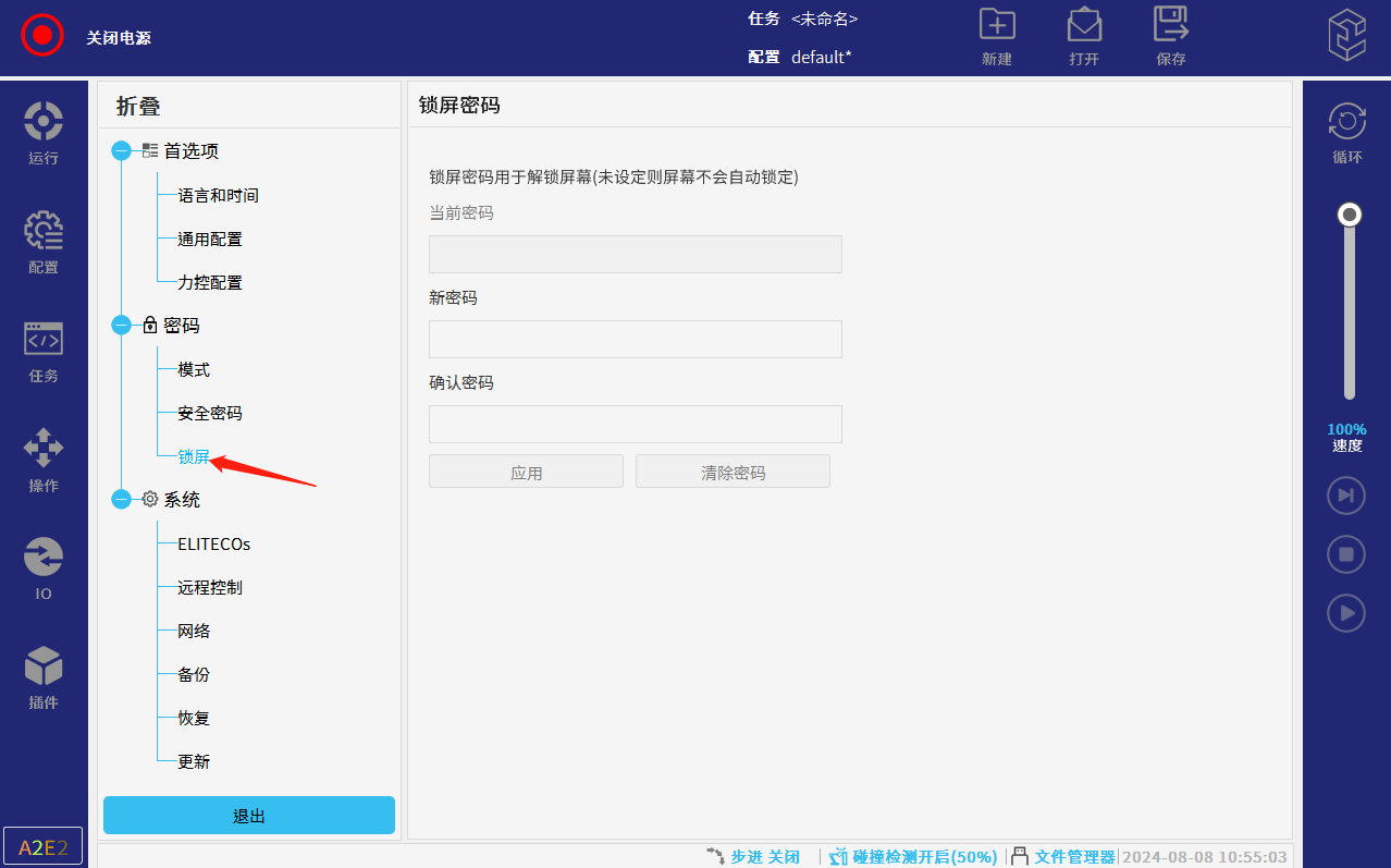 需要注意,2.13之前的版本,屏保只有自動(dòng)鎖屏,沒有手動(dòng)鎖屏。設(shè)置好自動(dòng)鎖屏?xí)r間 后,規(guī)定時(shí)間內(nèi)示教器沒有任何操作,才會(huì)鎖屏。