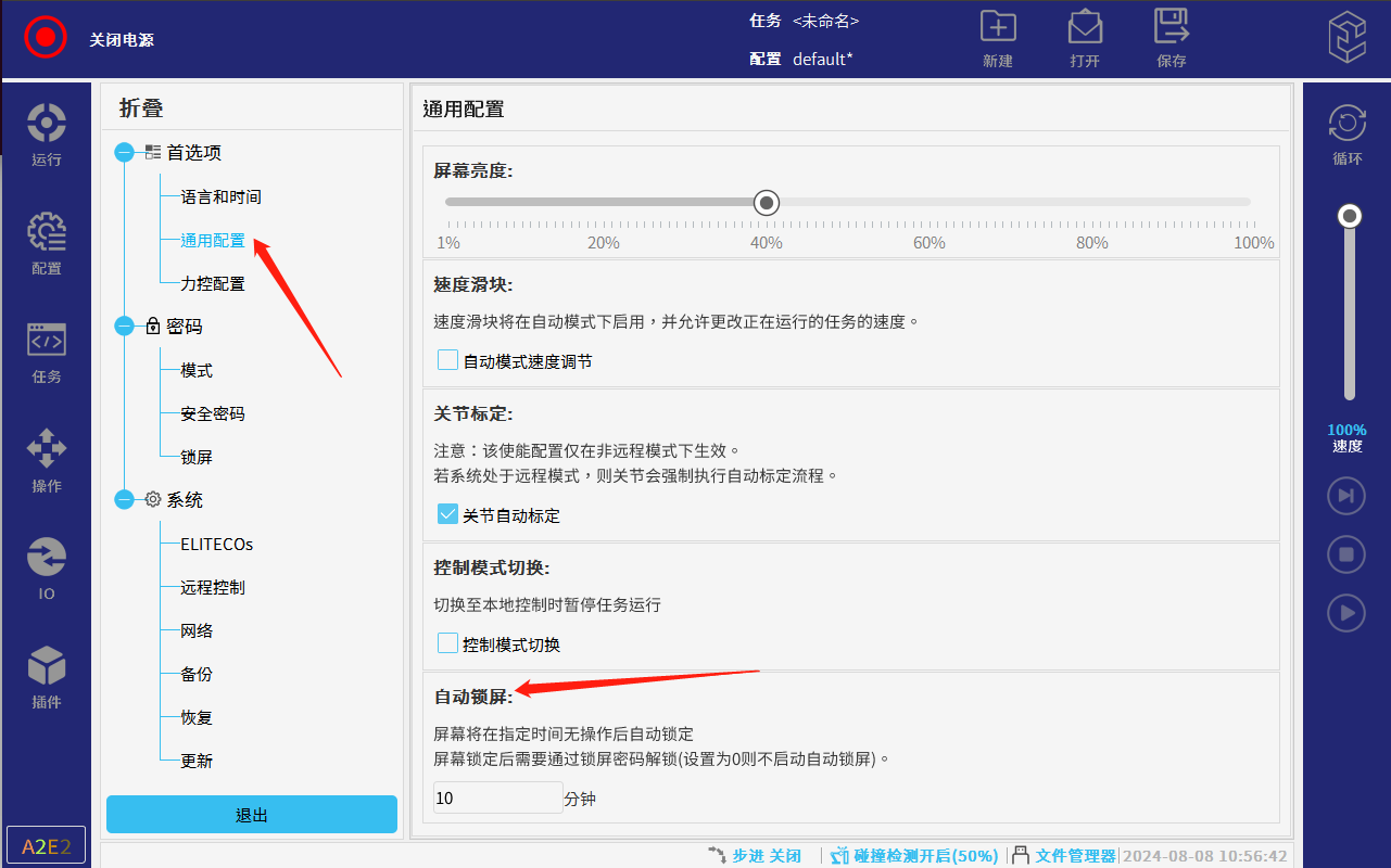 2.4. 點(diǎn)擊通用配置,可設(shè)置自動(dòng)鎖屏?xí)r間
