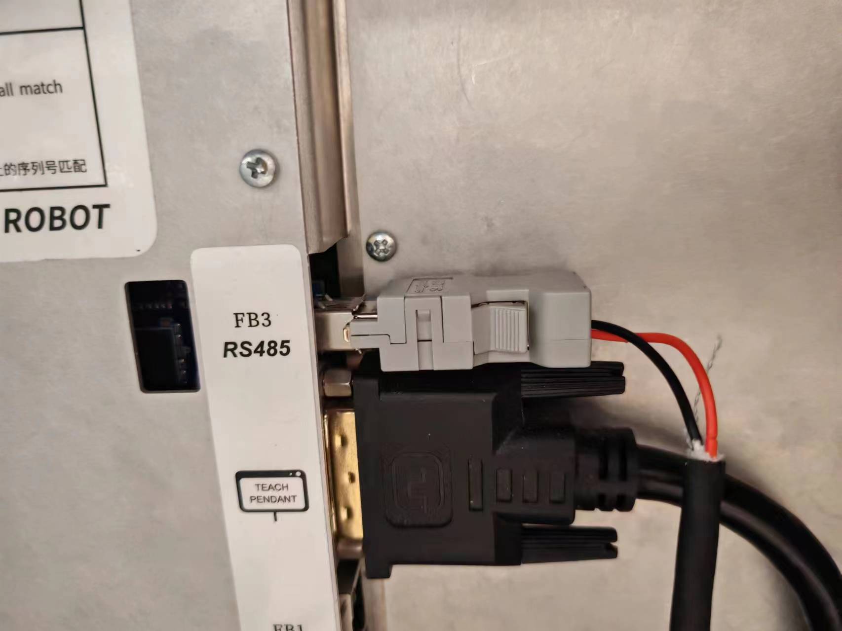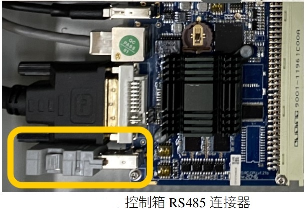 在控制柜接口處我們可以看到RS485接口,該接口就是我們的485接口,modbus_rtu時(shí)用到該接口,其中針腳3對(duì)應(yīng)485-,針腳4對(duì)應(yīng)485+,如下圖。