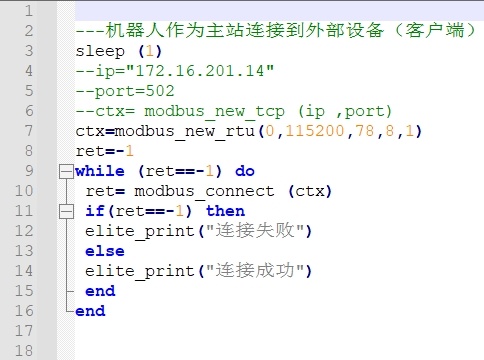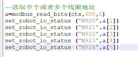 通過(guò)ModBus主站功能,機(jī)器人可以向外部設(shè)備讀取寫入數(shù)據(jù),已達(dá)到數(shù)據(jù)交互和邏輯控制的用途。