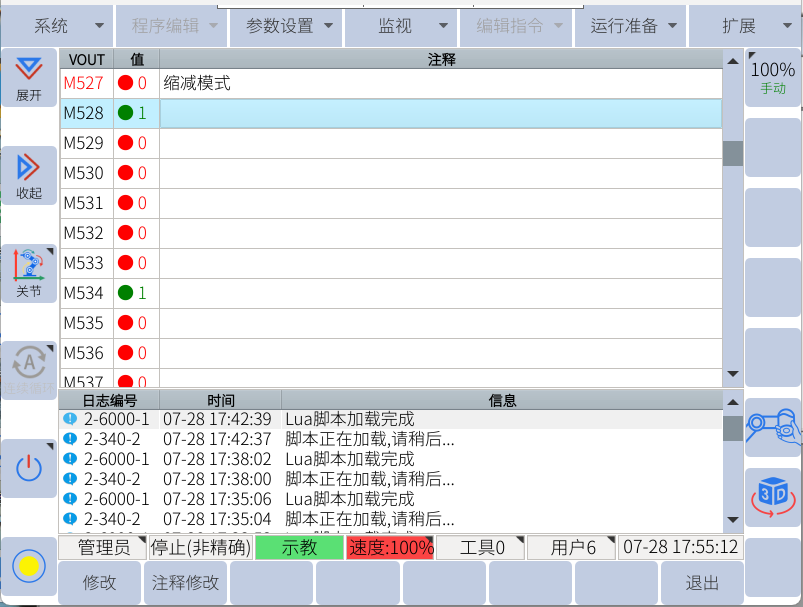 1. M0-M527,M1472-M1535為系統(tǒng)使用,只能讀取狀態(tài),通過(guò)示教器可
