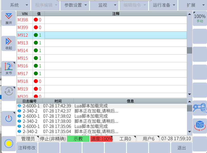 機(jī)器人端虛擬輸入M912-M917此時(shí)狀態(tài)都為1