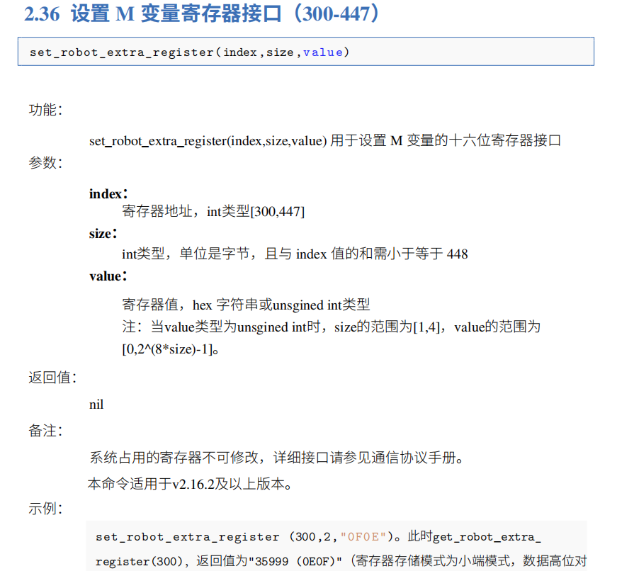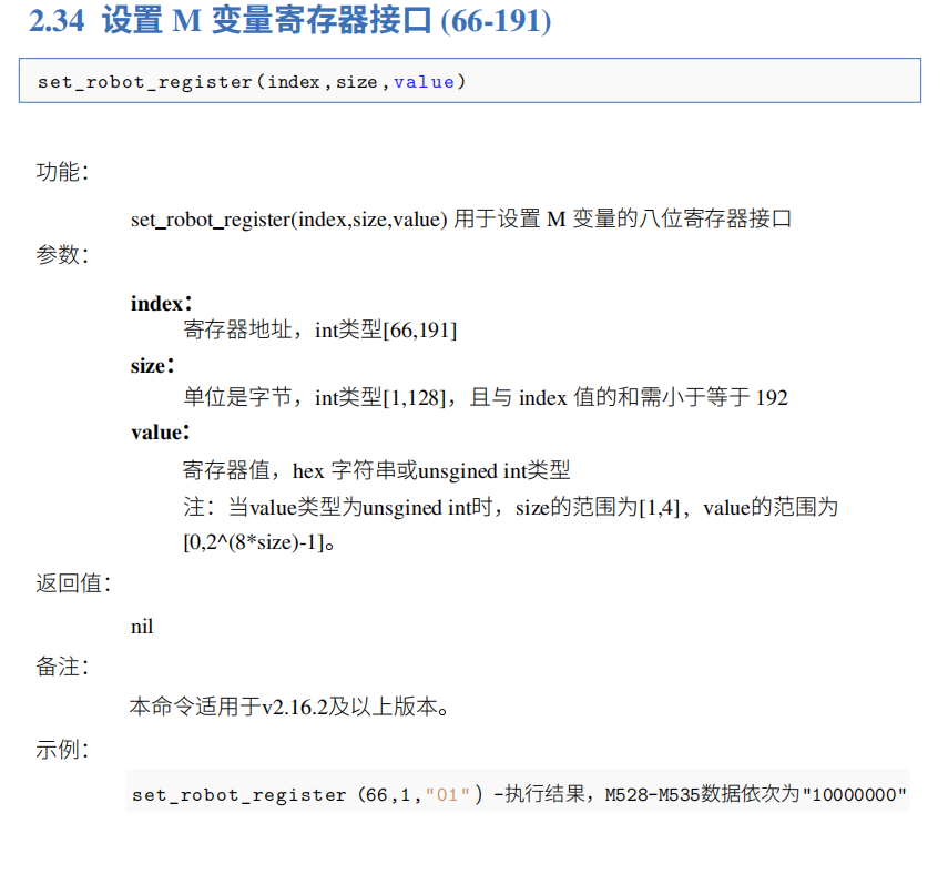 目前Elite機(jī)器人支持對(duì)虛擬變量M的操作,M為BIT型變量。單個(gè)M變量為線圈,多個(gè)連續(xù)的M變量可為寄存器 。