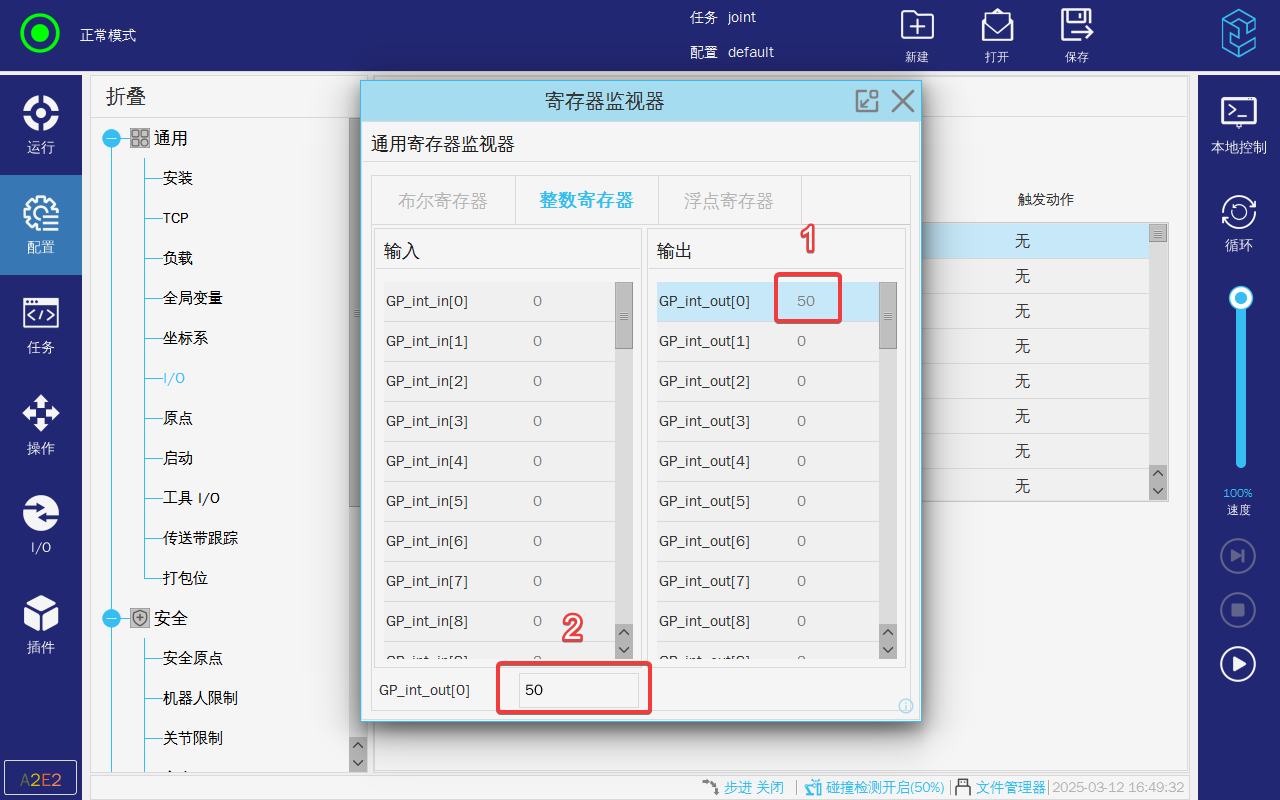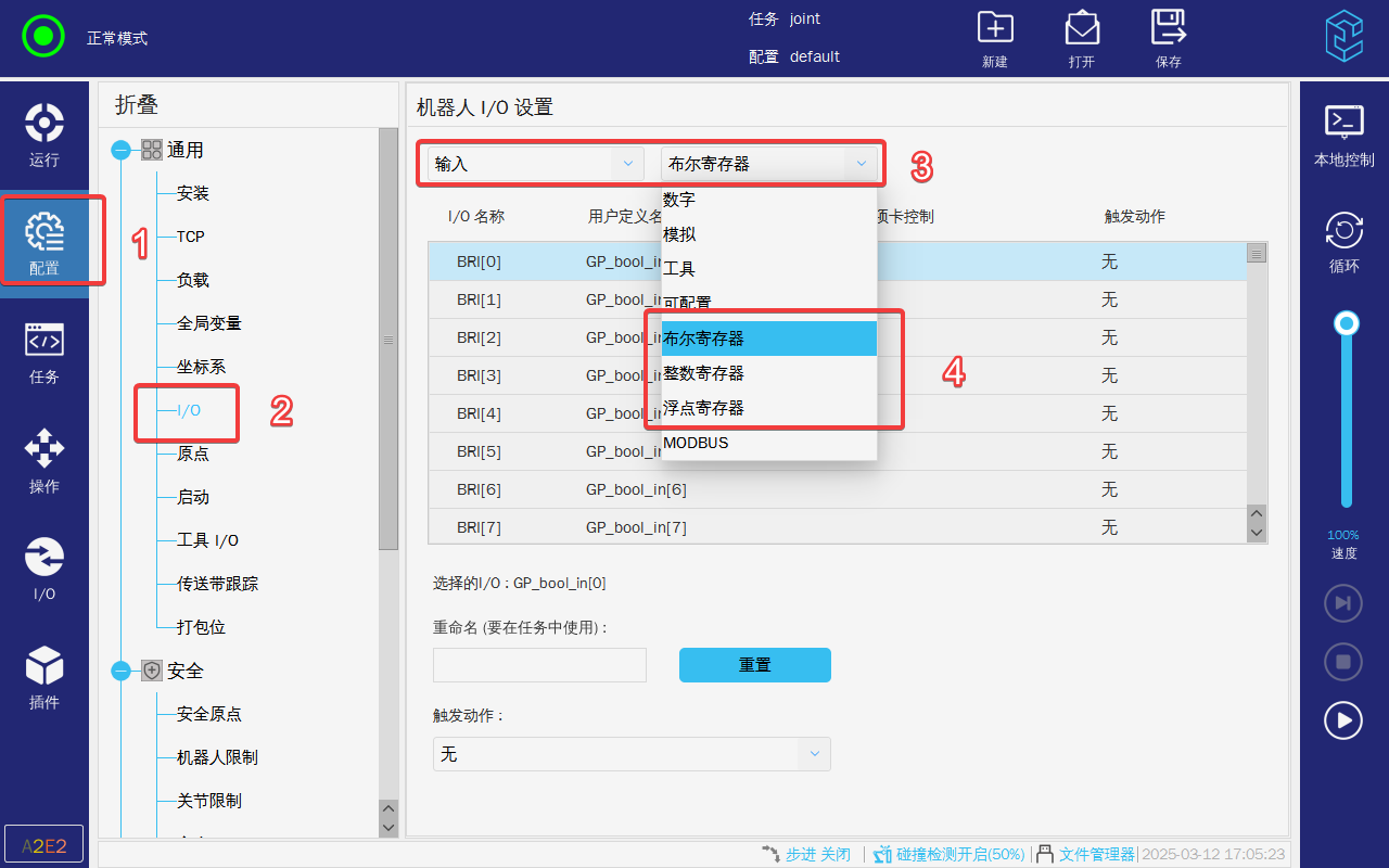 1. 點擊配置-通用-IO,選擇需要更改的輸入輸出寄存器,選擇后進行重命名;