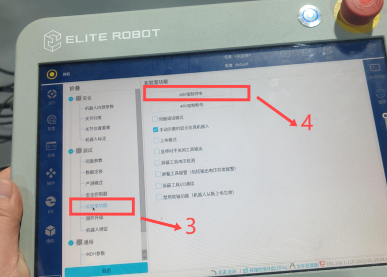 (2)選擇“實驗室功能”,并點擊“48V強制供電”,如下圖。