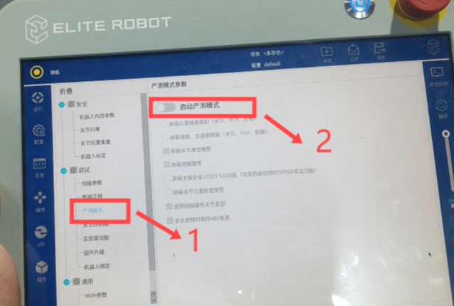 (1)進入專家模式,選擇”產測模式” ,并點擊”啟動產測模式”,如下圖。