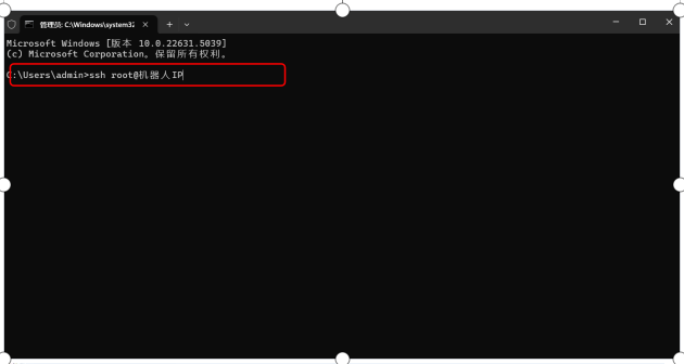 第一步:在電腦上按住Windows+R鍵輸入CMD進去圖-1界面,通過“ssh root@機器人X86_IP”登錄到控制器內部。ssh登錄密碼為elibot。如圖-1紅框所示所示。