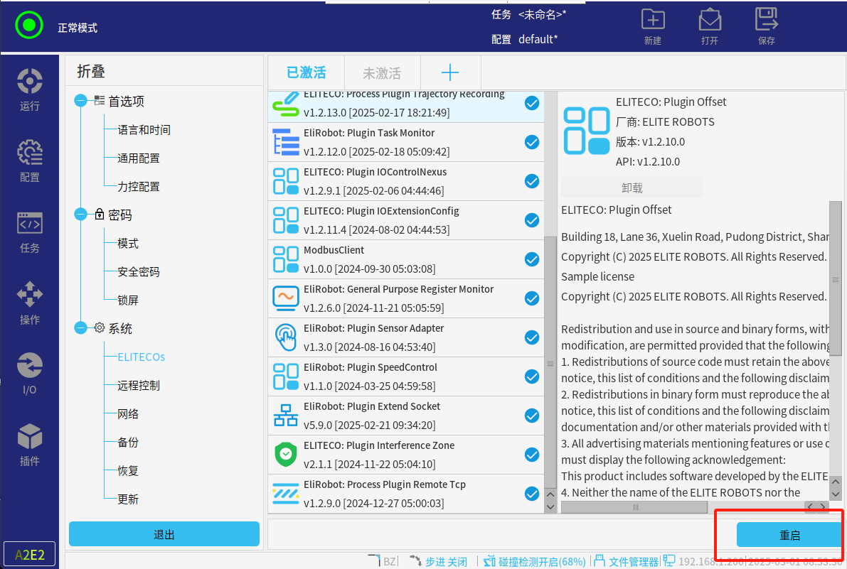 在連接成功后,在機器人左側導航欄的插件圖標內會有一個力監控選項,在機器人任意狀態下都可以監視當前力傳感器的數據。(即使在任務運行中)
